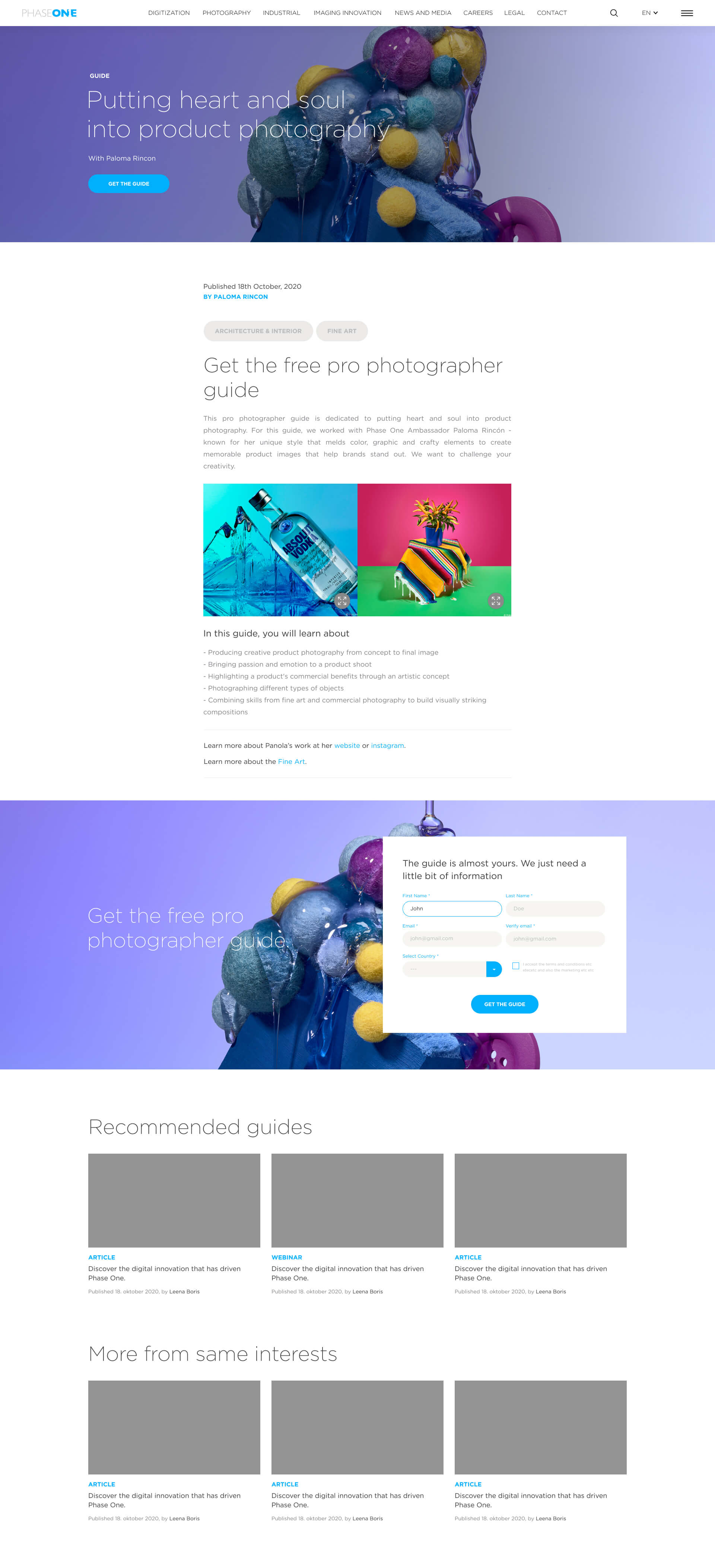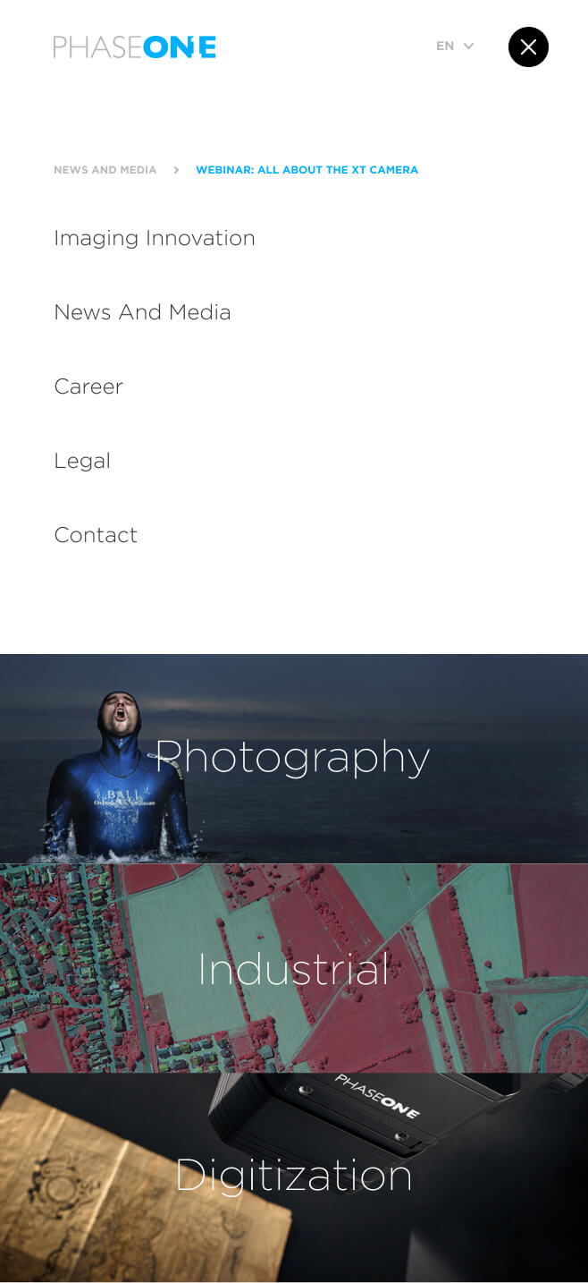Phase One, a leading manufacturer of high-end digital photography equipment, approached our team at Checkmate, my previous workplace, to enhance the design and functionality of their existing website. The goal was to create a more visually appealing and user-friendly platform that effectively showcased their premium products with new features that could improve user engagement and product exploration.